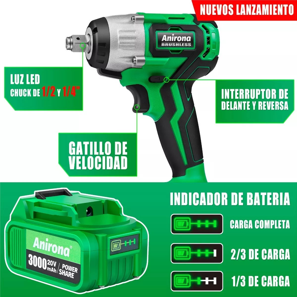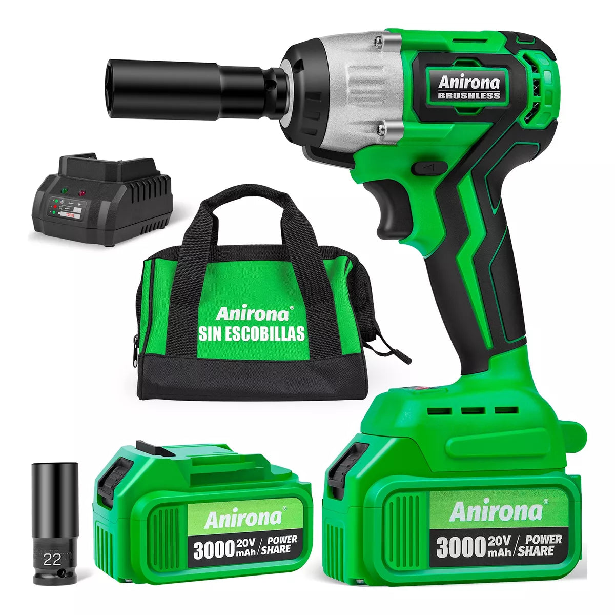 Llave De Impacto Inalámbrico Anirona De 20v 3.0ah Batería