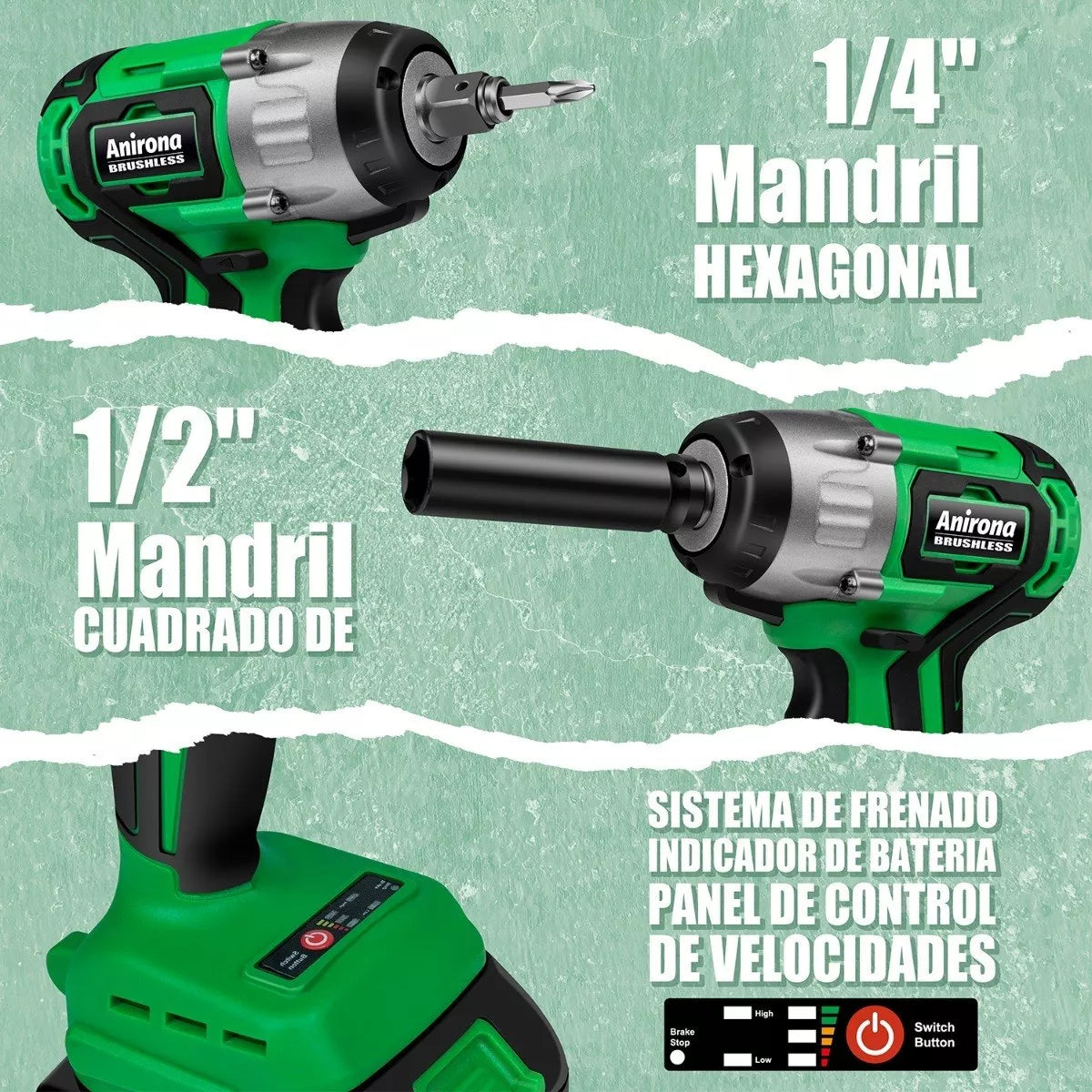 Llave De Impacto Inalámbrico De 20v Anirona 3.0ah C/2batería