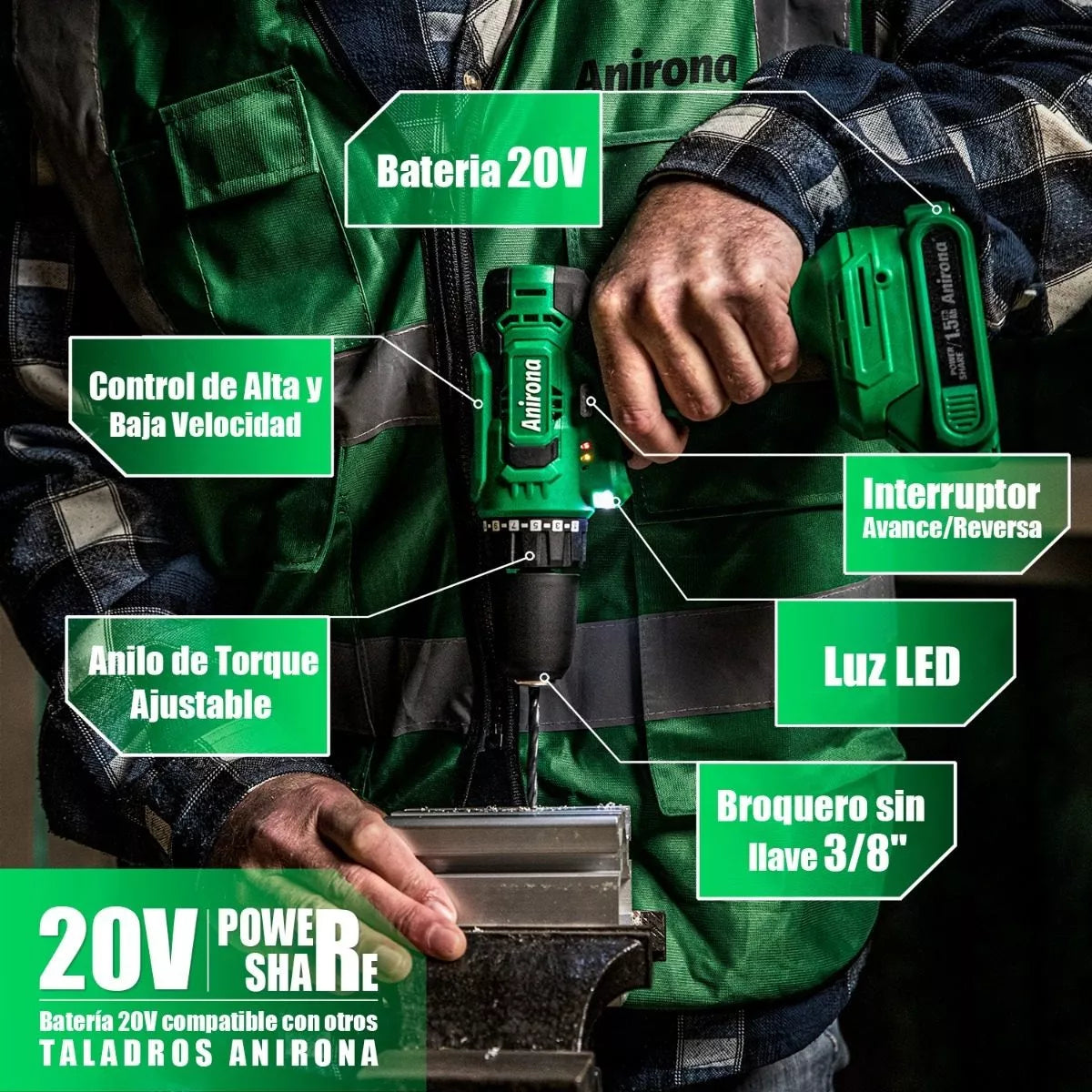 Batería compatible: Compatible con otros taladros y herramientas ANIRONA.