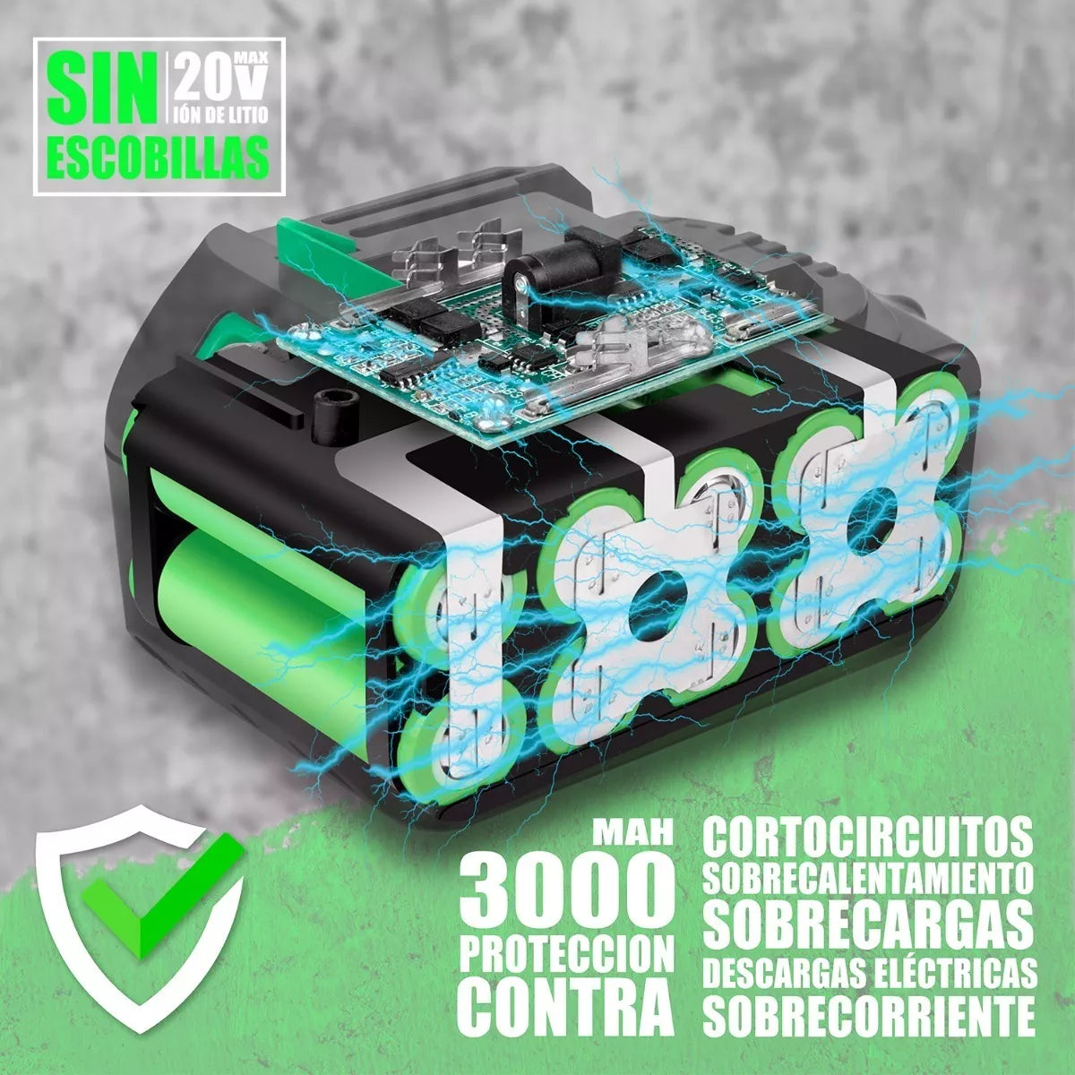 2 BATERÍAS de 20 V: dos baterías de iones de litio de gran capacidad de 3.0 Ah y un cargador rápido mantienen el taladro sin escobillas funcionando continuamente.