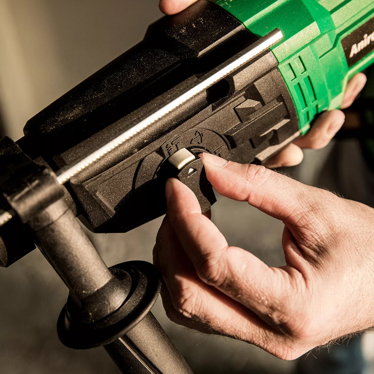 The three functions are switched by three buttons. You can change the position of the drill, hammer, and chisel as needed. It is also easy to drill through hard materials such as wood, masonry, steel, walls, and concrete.