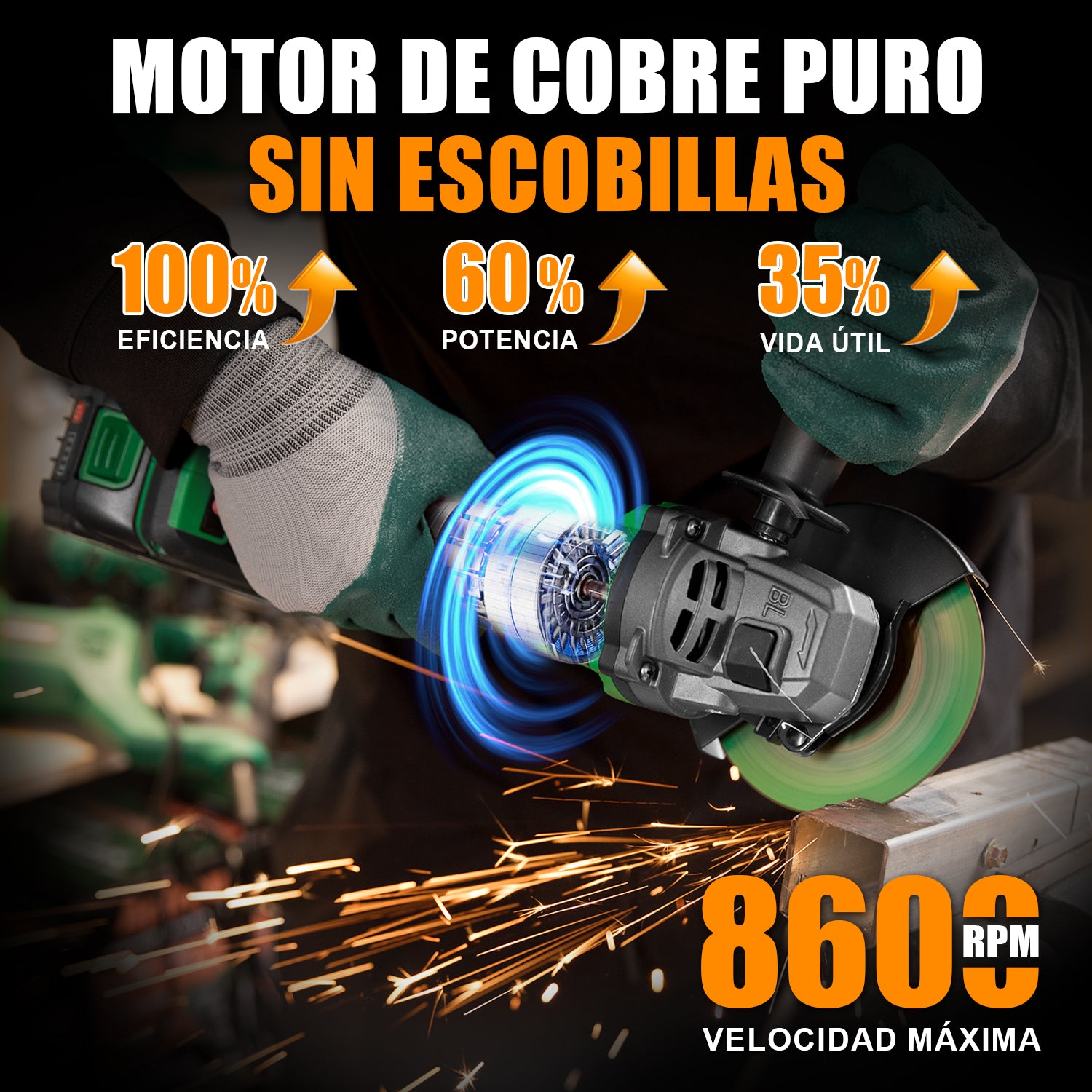 Esmeriladora Angular Inalámbrica 4-1/2 Sin Carbones Anirona