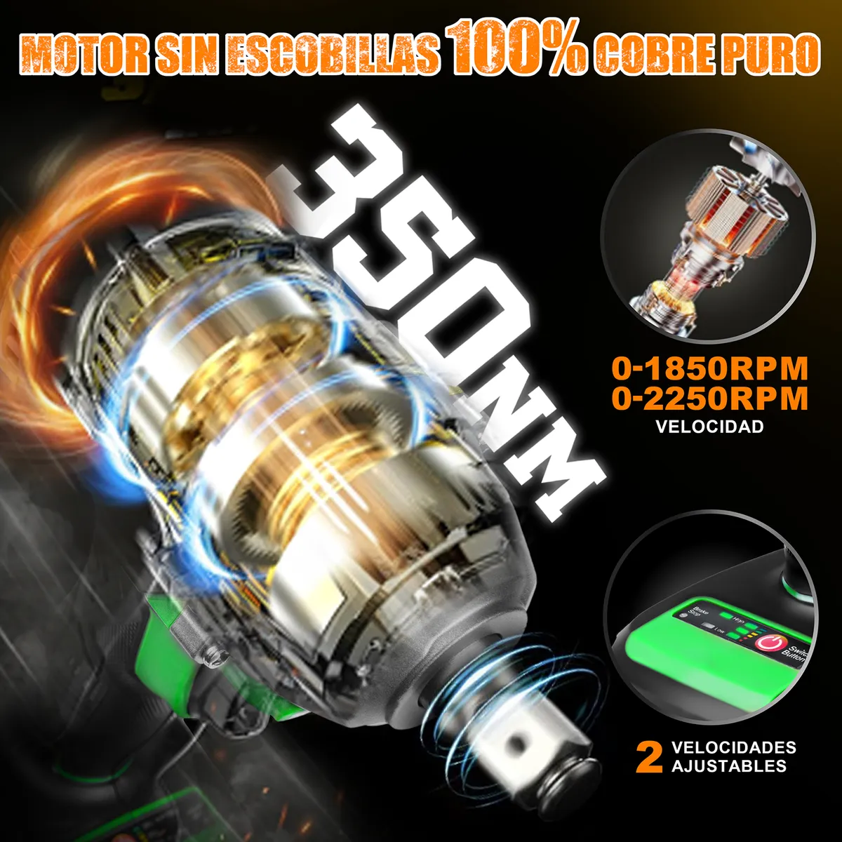 -Motor sin escobillas: Es un motor eficiente, sin chispas y más duradero. La versión sin escobillas es más potente que el motor con escobillas tradicional!.