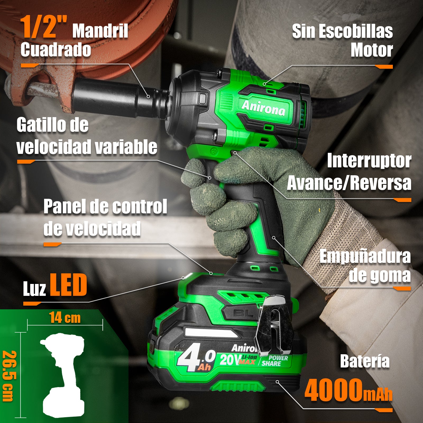 Brushless Llave De Impacto Inalámbrico Kit Anirona 4.0ah